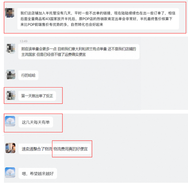 在多个卖家交流群中,有商家晒出了加入半托管后的战绩——“第一天就出单”。还有卖家透露,商品上架后短时间内收到数百条出单信息,手机都刷屏了。
