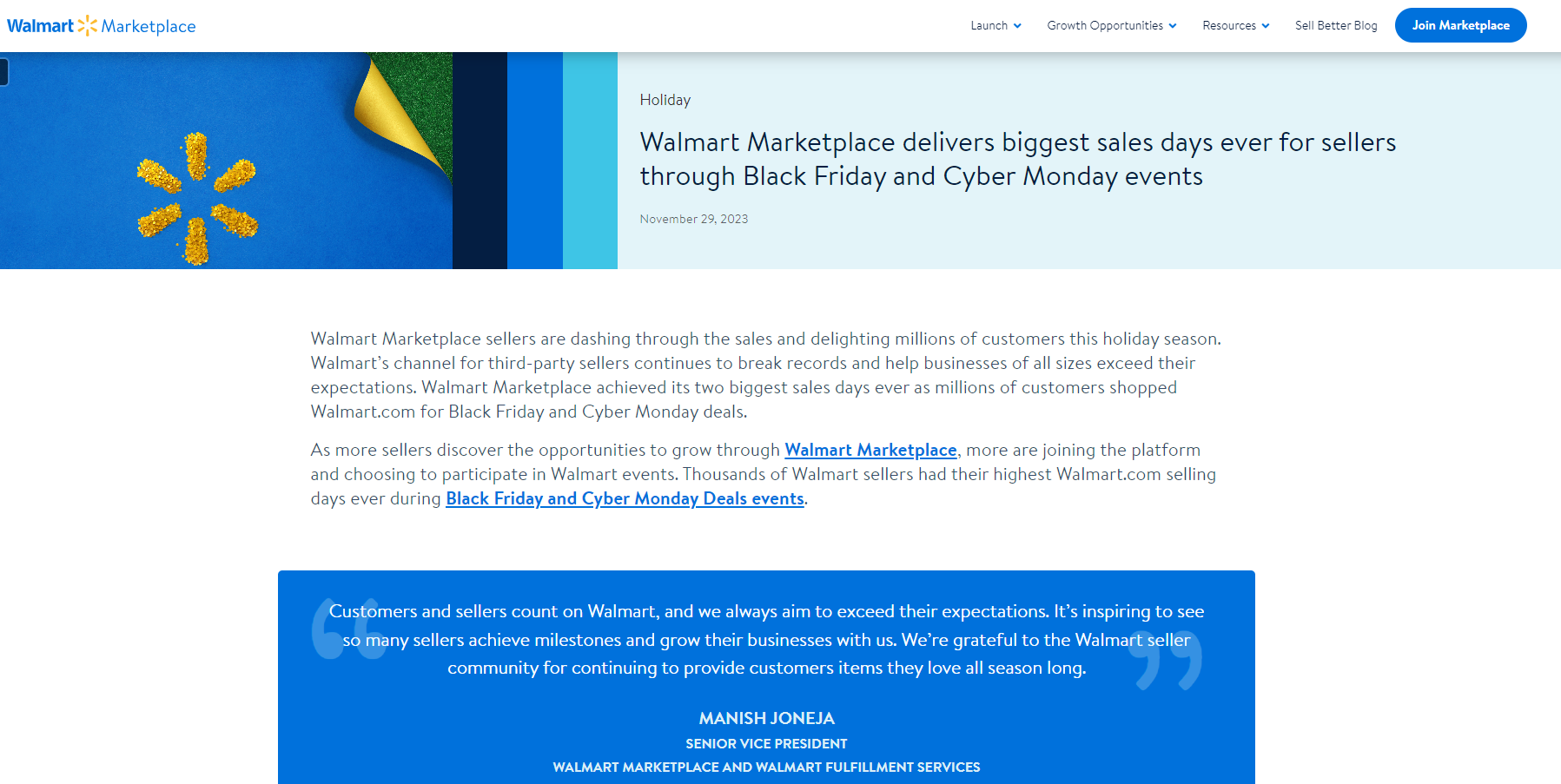 黑五网一过后,不少平台都发布了各自的战报,近日,沃尔玛也公布了黑色星期五和网络星期一战报,作为沃尔玛有史以来最大的销售日。