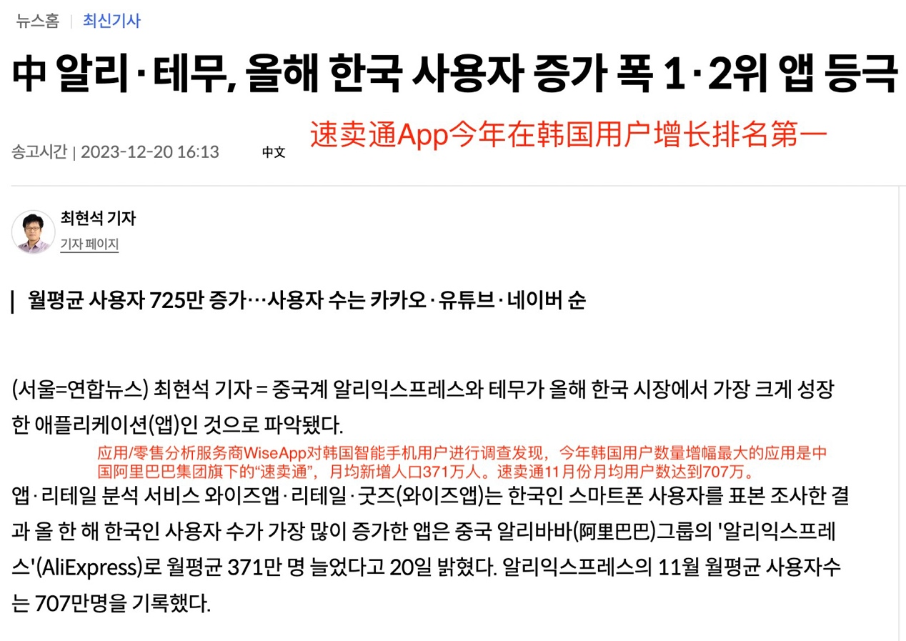 据韩联社报道,韩国手机应用和零售分析服务商Wiseapp·Retail·Goods于20日发布的一项调查结果显示,跨境电商平台速卖通AliExpress成为今年韩国市场新增用户最多的手机App。
