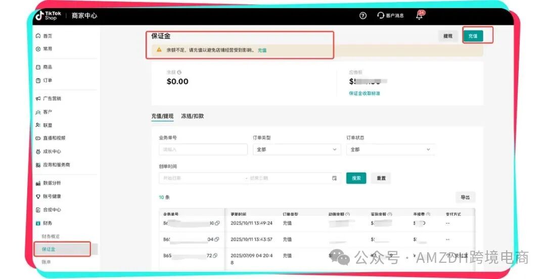 商家可通过 TikTok Shop 卖家中心的 “店铺资金 - 保证金” 入口完成缴纳。若选择支付宝充值,务必确保支付宝账户所有者与店铺法人身份一致,否则可能引发充值失败、提现异常等风险,给资金安全埋下隐患。