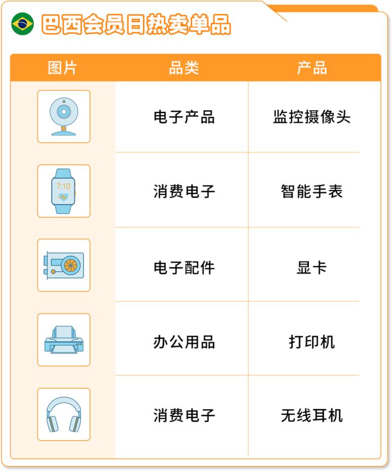 从上述热卖清单中不难看出,墨西哥站和巴西站的消费者对「电子类产品」喜好度和需求度都是拉满的,值得为参加后续大促的卖家做选品参考哟~