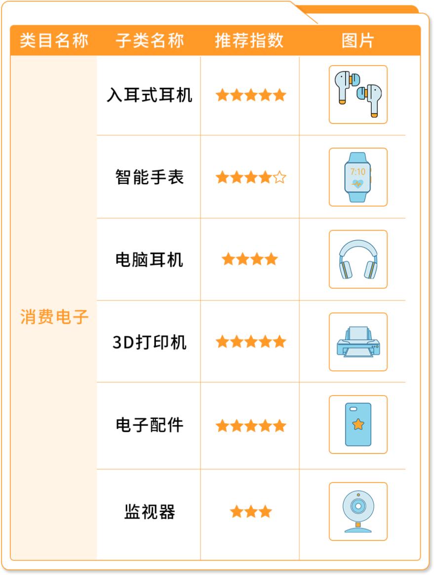 消费电子品类是最热销的产品,服装和配饰是主要热销类目,家居和家具是第二大热卖品类。