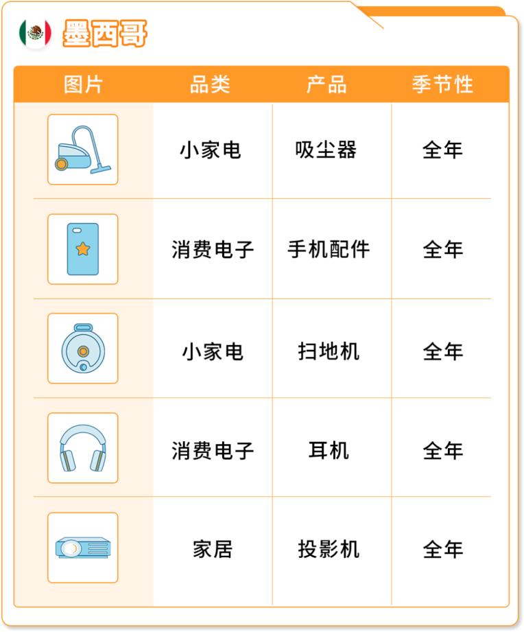 墨西哥消费者热衷尝试3C电子产品。这类产品更新迭代快,需根据自身优势,契合流行趋势,把握促销节点和热卖旺季。