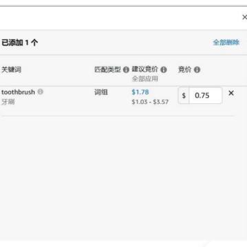 卖家在广告设置时可查看商品推广和品牌推广的建议关键词。还能以卖家选择的语言在下方显示翻译。只需选择最适合的建议关键词,设置竞价,即可启动广告活动。