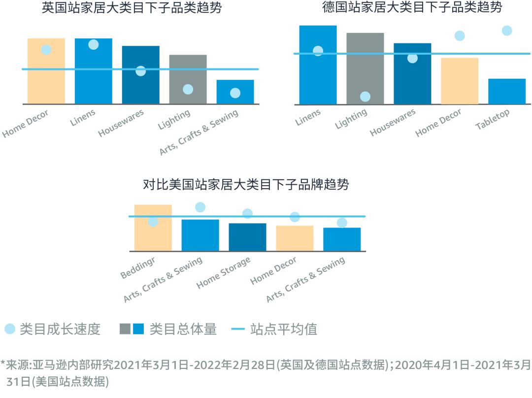 从图中可以看出各站点的子类目成长速度、规模都有一定差异,因此卖家可以结合整体来选择合适的站点。