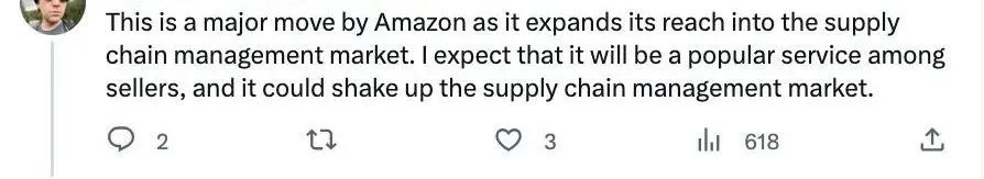 “这对卖家来说是个好消息,亚马逊的供应链计划正在彻底改变卖家的运营方式。先进的物流和高效的运输真正实现了更快、更可靠的产品交付并降低了成本。”