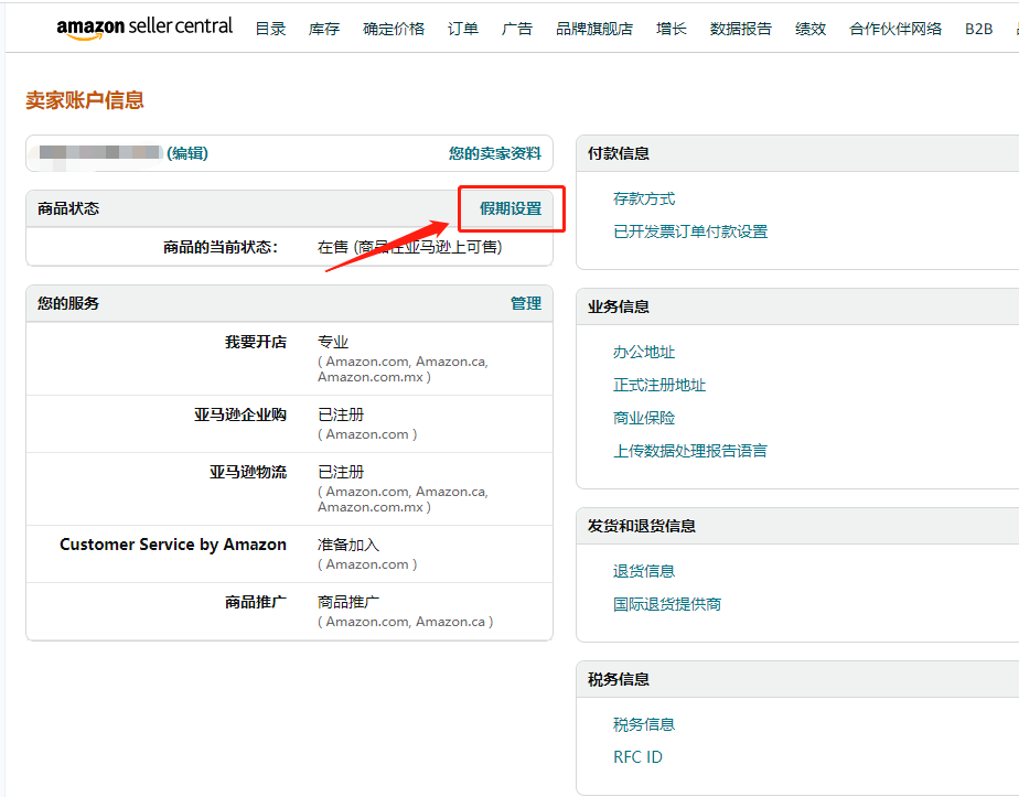 亚马逊后台——设置(setting)——账户信息(Account info)