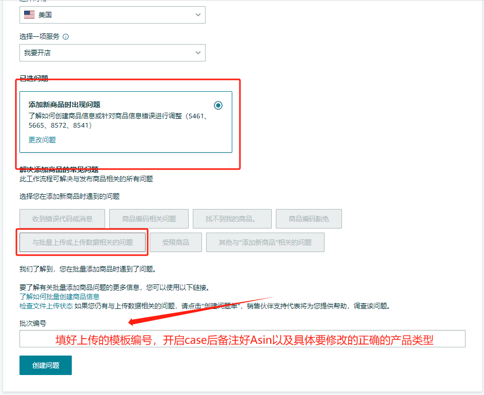 1、帮助-获取支持-我要开店,描述问题“申请白名单”,选择“添加新产品时出现问题”,选择“收到错误代码”