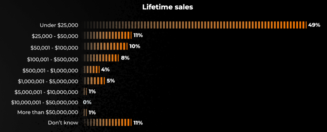 17% 的 SMB(中小型企业)亚马逊卖家的终身销售额已超过 100,000 美元: