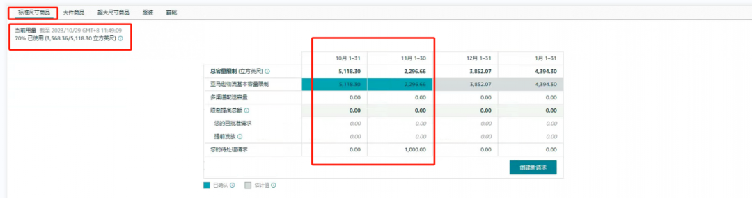 这就是为什么卖家可能会在 10 月份看到更高的容量限制,但随后在 11 月份看到较低的库存限制。
