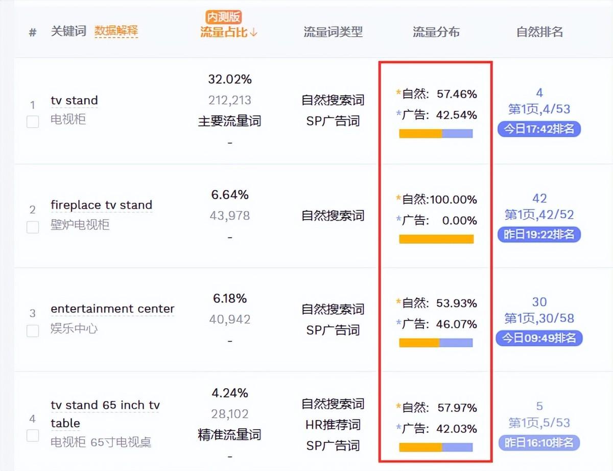 如果你发现你的广告流量词占比比较高,那么你的广告订单也会比较高的。这样时候,我们可以考虑提升自然流量,降低广告流量。