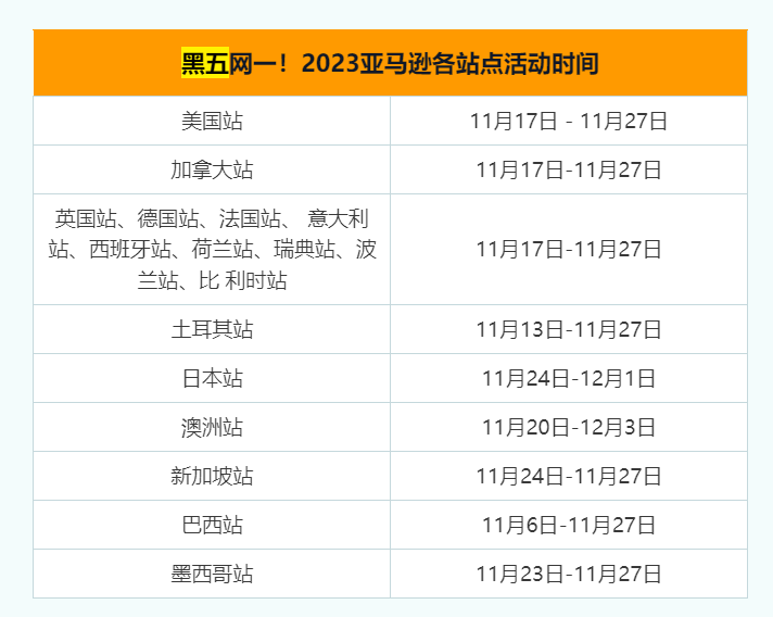 今天,亚马逊黑五大促的钟声正式敲响。美国站、加拿大站及多数欧洲站点,于11月17日开始举行黑五大促,促销活动将进行到11月27日。