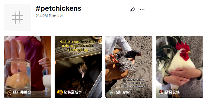 据了解,在谷歌搜索上,美国民众对“养鸡”这个关键词的搜索兴趣在过去几个月内呈现显著增加,是去年同期的大约两倍。在TikTok上,带有宠物鸡标签的视频播放量更是高达2.14亿。与鸡相关的产品也在此时迎来更大的爆发。