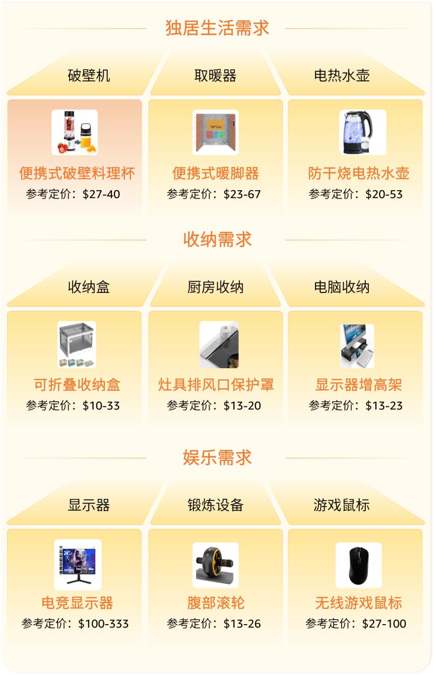 独居人群尤其青睐易收纳、便携的产品。比如下面榜单中月销3000+件的便携式破壁料理杯,就以精致的设计突出重围。这个搅拌器的主体部分可以直接当作瓶子使用,无需将搅拌好的冰沙取出,非常适合随身携带。