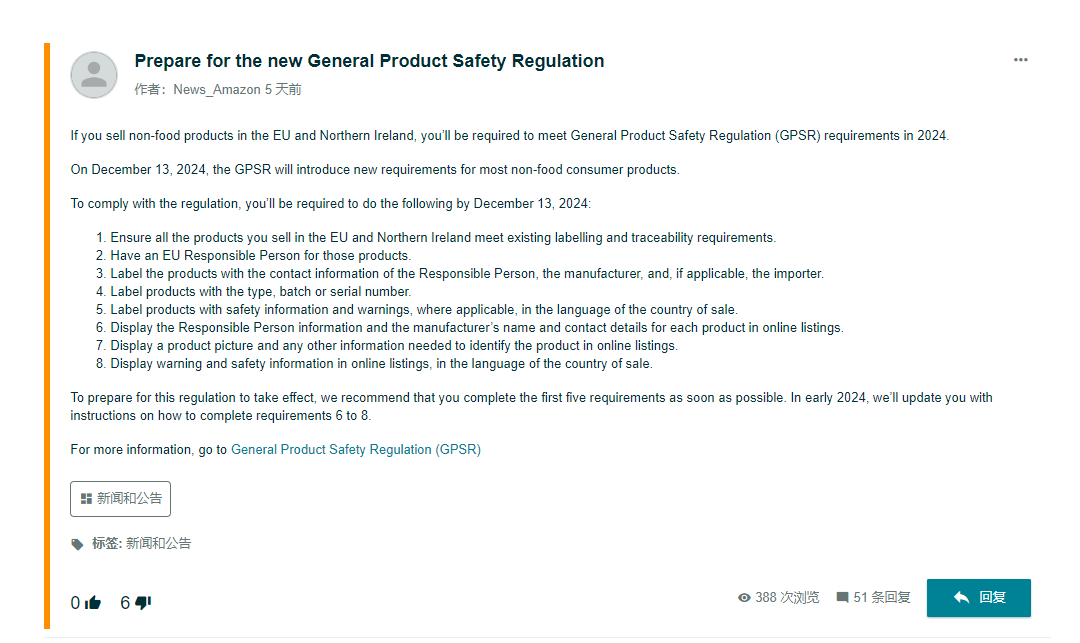 一、亚马逊发布GPSR新规