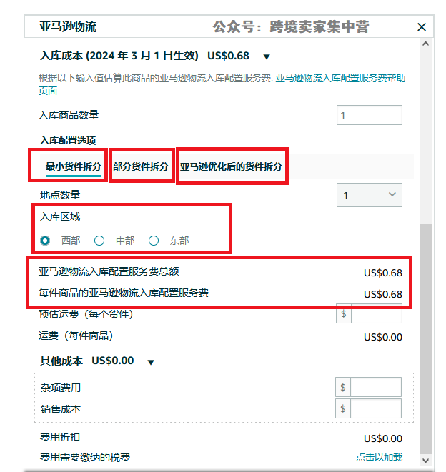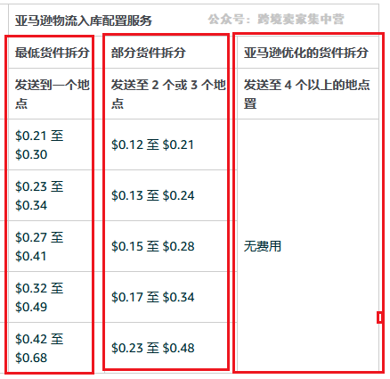 也就是如果亚马逊给你分了多个FBA仓库,你只选择其中的一个FBA仓库进行发送,那就是这个最低货件拆分的收费标准。